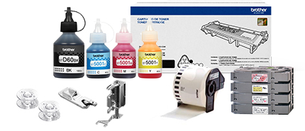 Elija insumos originales Brother para impresión, etiquetado y costura para garantizar un rendimiento óptimo de sus máquinas Brother.